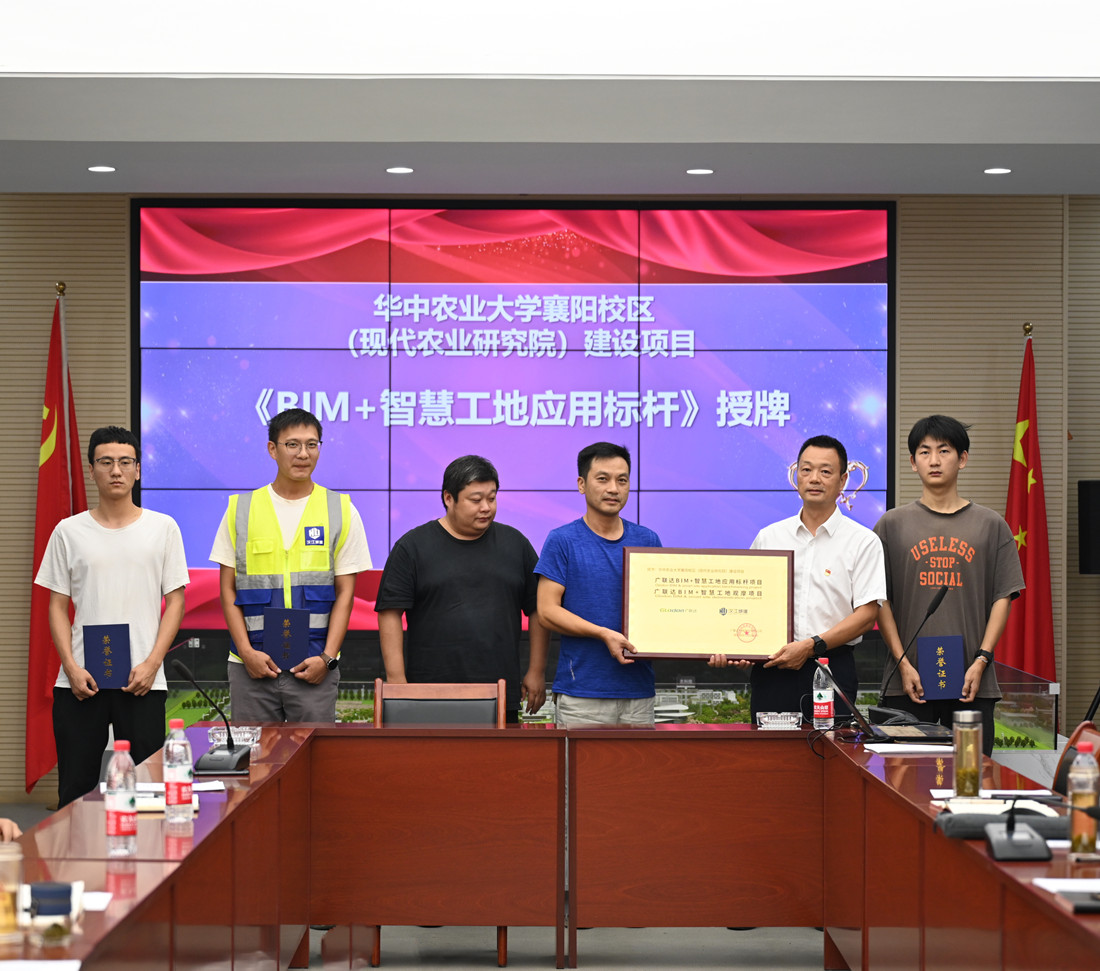 華中農(nóng)業(yè)大學(xué)襄陽校區(qū)(現(xiàn)代農(nóng)業(yè)研究院)建設(shè)項(xiàng)目榮獲“廣聯(lián)達(dá)BIM+智慧工地應(yīng)用標(biāo)桿項(xiàng)目”和“廣聯(lián)達(dá)BIM+智慧工地觀摩項(xiàng)目”稱號,9月14日,進(jìn)行了標(biāo)桿項(xiàng)目授牌儀式,漢江城建、廣聯(lián)達(dá)湖北分公司等相關(guān)負(fù)責(zé)人參加了本次活動。