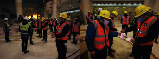 2月6日凌晨2點(diǎn)30分,第一車材料到達(dá)城市名人酒店,早已等候在現(xiàn)場(chǎng)的工人馬不停蹄開始卸貨、搬運(yùn)、裁減、鋪設(shè)施工,在疫情面前,市政人用團(tuán)結(jié)的精神、專業(yè)的技能、高效的協(xié)作,爭(zhēng)奪每一分每一秒。凌晨4點(diǎn),第二車材料到達(dá)共享國際酒店。