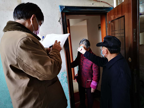 對家屬院逐戶進(jìn)行體溫排查并登記。