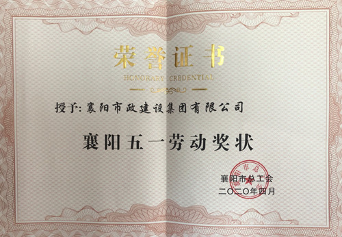 4月28日,襄陽市總工會授予市政集團“襄陽五一勞動獎狀”先進集體榮譽稱號。