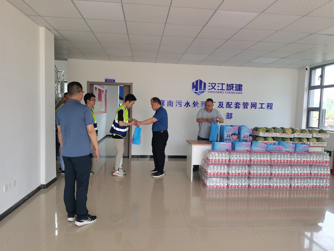 7月10日上午,集團黨委委員、董事謝鋒一行深入襄南污水處理廠及配套管網項目,為奮戰(zhàn)在作業(yè)一線的員工送來了礦泉水等防暑降溫物品,把清涼送到了生產一線,把關懷送到員工心坎。