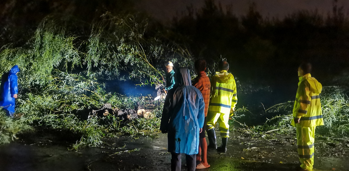 在襄城區(qū)濱江大道排澇現(xiàn)場(chǎng),黨員沖鋒在前的身影映入眼簾,他們徒手掀開下水井蓋,清理淤泥雜物,齊力推行無法行駛車輛。一旁的行道樹刮倒橫在路中,擋住了來往車輛行駛,他們站在齊膝的積水中指揮交通,砍伐阻攔在路中的枝干,清理散落的樹枝。截止凌晨一點(diǎn),歷時(shí)3小時(shí),濱江大道積水已局部排出,主干道恢復(fù)交通。