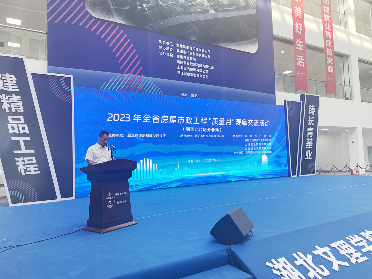 9月22日,2023年全。ǘ跷鞅逼瑓^(qū))住建系統(tǒng)“質量月”觀摩交流活動在湖北文理學院遷建項目舉辦。來自襄陽、十堰、隨州、神農架、孝感住建部門負責人、質監(jiān)站負責人和部分項目企業(yè)代表300多人參加。漢江城建黨委副書記、副董事長、總經理蔡軍作交流發(fā)言。