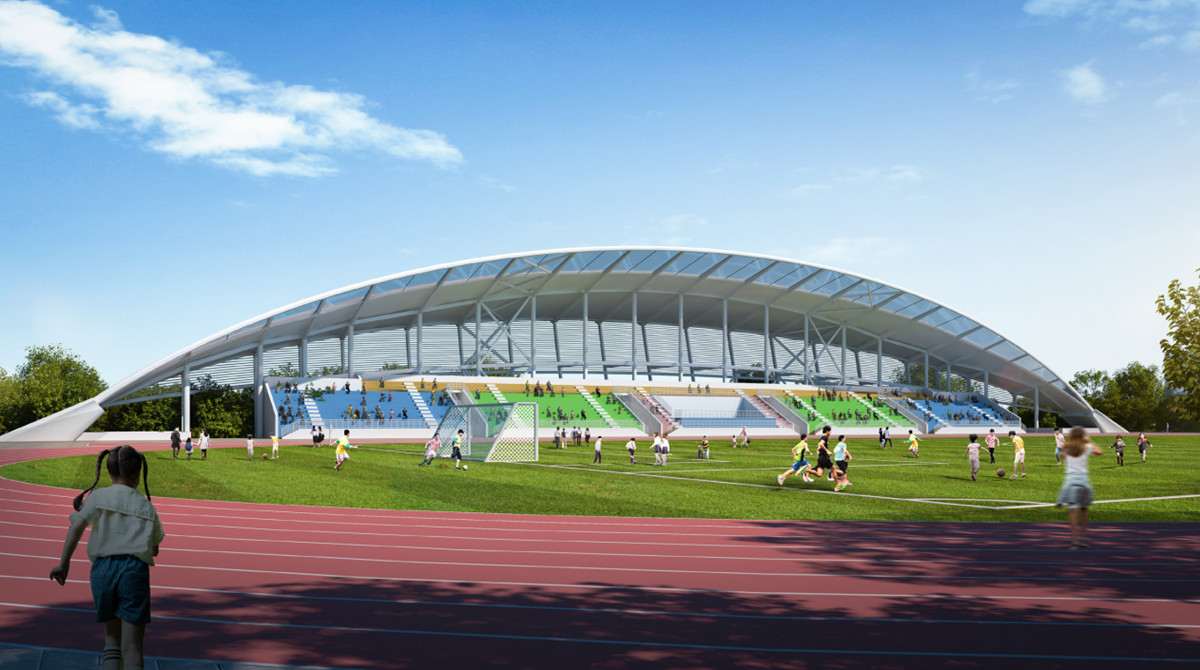 湖北文理學(xué)院理工學(xué)院修繕二期設(shè)計(jì)施工總承包建設(shè)項(xiàng)目占地面積1794㎡,總建筑面積3556㎡,造價(jià)1200萬(wàn)元。項(xiàng)目包括看臺(tái)主體1762㎡、下部輔助用房1794㎡、罩棚、附屬道路、室外管網(wǎng)及綠化等工程,其中看臺(tái)主體為1層框架結(jié)構(gòu),建筑高度8.25m,東西寬12.3m,南北跨度119m,采用長(zhǎng)螺旋鉆孔壓灌樁承臺(tái)基礎(chǔ),鋼結(jié)構(gòu)罩棚高24.3m,建成后能滿足湖北文理學(xué)院理工學(xué)院師生文化體育活動(dòng)需求,給廣大師生提供安全、舒適、充裕的體育鍛煉場(chǎng)所,為學(xué)校體育工作促進(jìn)全校師生體育鍛煉、健全人格、強(qiáng)健體魄、健康發(fā)展提供了有力的基礎(chǔ)保障。