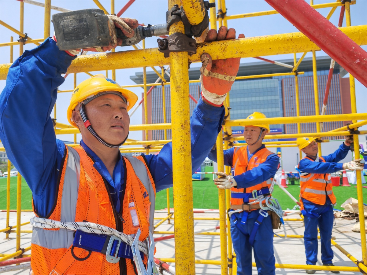 支撐架搭設(shè)競賽共4支參賽隊(duì)16名選手參加。大家在緊張的1個(gè)小時(shí)比賽時(shí)間內(nèi)完成了落地式扣件式鋼管腳手架的搭設(shè)。各參賽隊(duì)伍操作嫻熟、配合默契、你追我趕,比拼中不忘展示一線建設(shè)人員的專業(yè)素養(yǎng)。最終,建安分公司代表隊(duì)榮獲第一名。