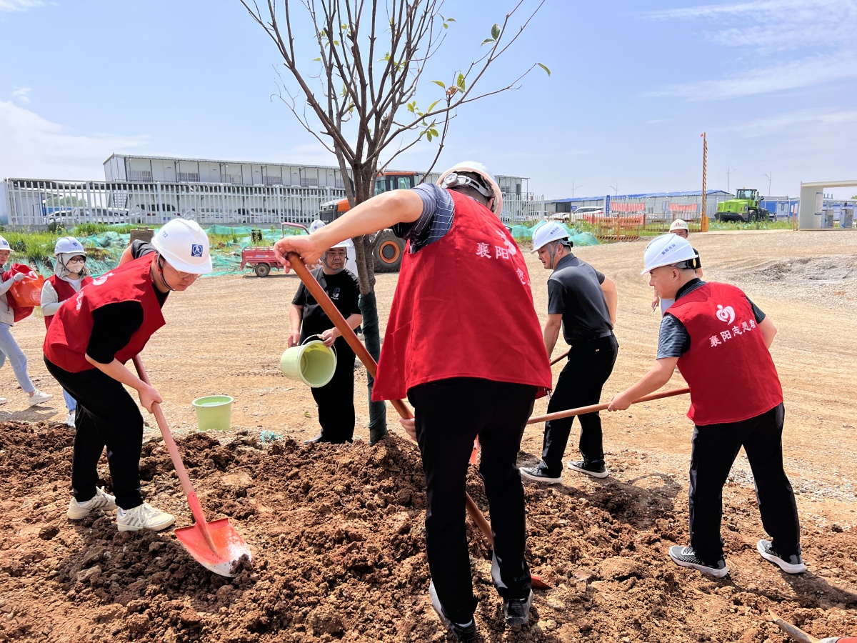 緊接著,雙方共同在國創(chuàng)公司內(nèi)部開展了一場別開生面的植樹活動(dòng)。眾人齊心協(xié)力,揮鋤挖土、扶苗培土、提水澆灌,一棵棵小樹苗在辛勤勞作中扎根于土,為這片區(qū)域注入了新的生機(jī)與活力。