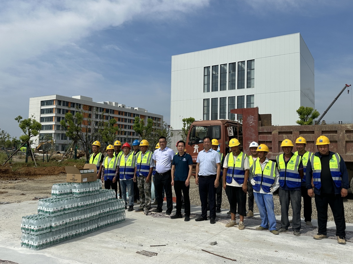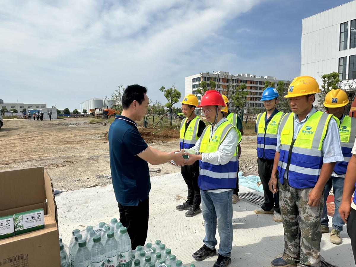 上午10點(diǎn),國創(chuàng)公司班子成員到達(dá)項(xiàng)目工地現(xiàn)場(chǎng),向辛勤工作的工人們送去了礦泉水、藿香正氣水、十滴水等防暑降溫物資,并叮囑大家在高溫天氣下注意防暑,確保身體健康。