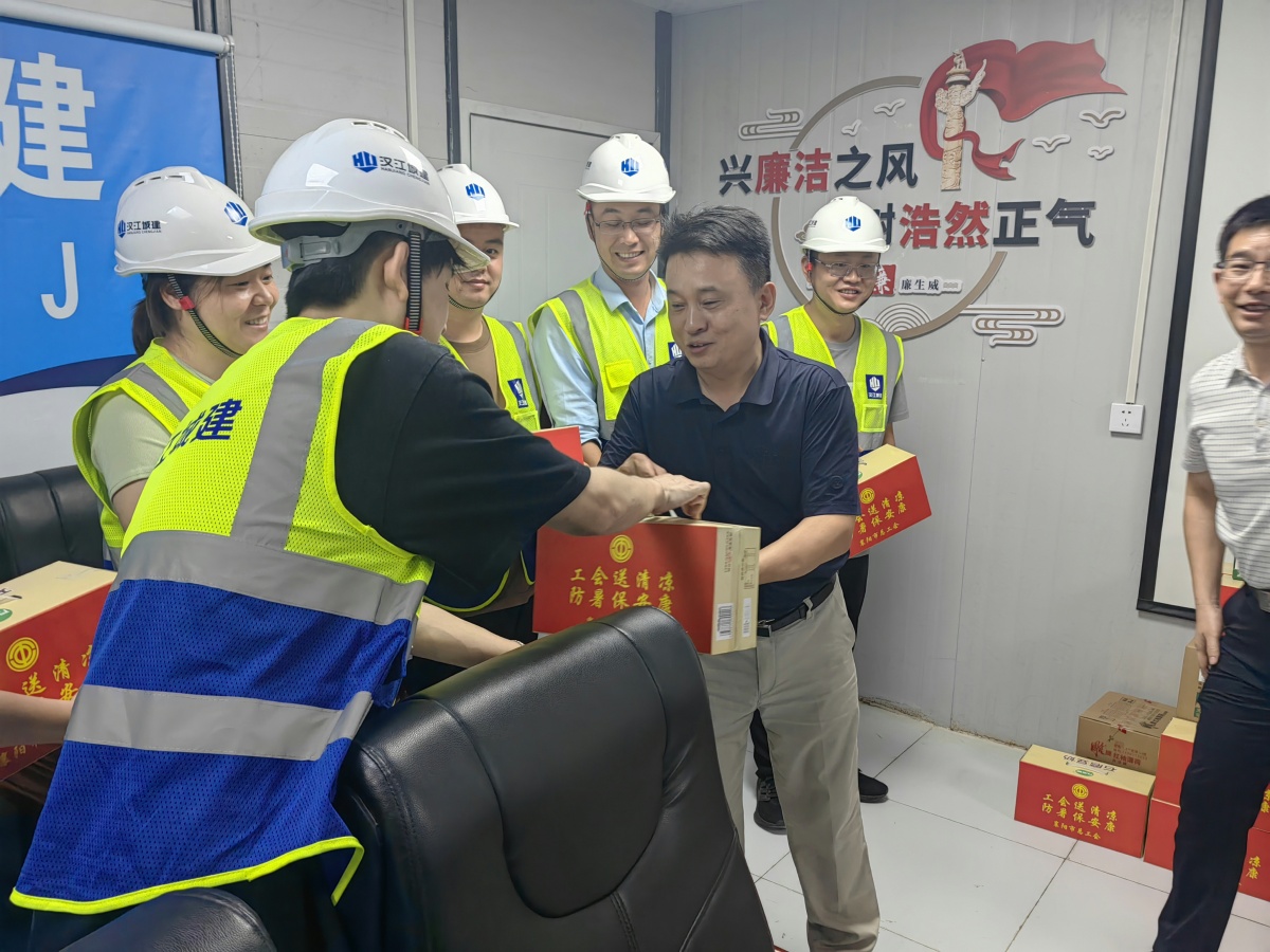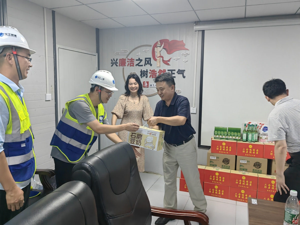 活動現(xiàn)場,市總工會代表們?yōu)檫@些堅守在一線的建設(shè)者送上飲品、防暑藥物、日常所需的生活物品以及綠豆等,表達(dá)對一線員工辛勤付出的感謝與關(guān)心。孫俊峰一行詳細(xì)了解了工程的施工進(jìn)度和建設(shè)情況,叮囑大家在做好本職工作的同時,注意防暑降溫。