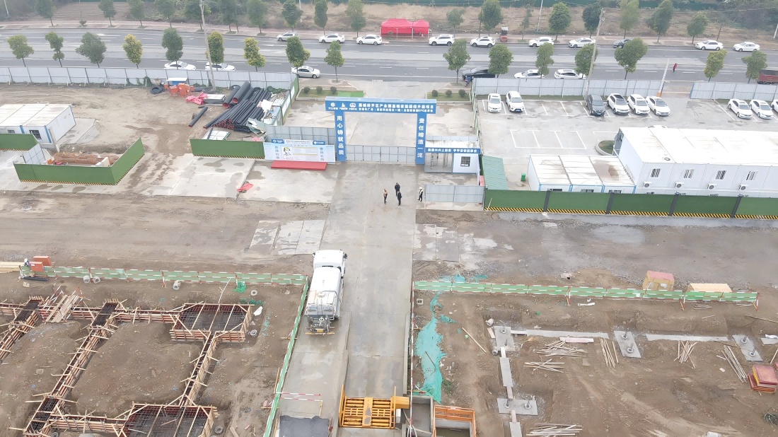 項(xiàng)目現(xiàn)場(chǎng),工程車來回穿行,施工人員堅(jiān)守崗位,忙碌在施工一線。工人有序作業(yè),各工種協(xié)調(diào)配合,機(jī)械聲不絕于耳。管理人員來回巡查指揮現(xiàn)場(chǎng)施工,一派火熱景象。自9月進(jìn)場(chǎng)施工以來,該項(xiàng)目已完成50%的地基基礎(chǔ)施工、1460米圍墻施工,廠區(qū)道路路基換填A(yù)B料完成31800平方米。