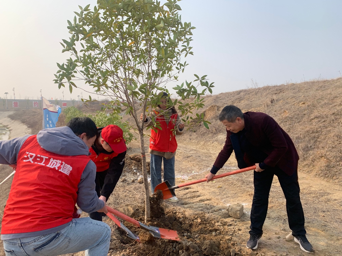 植樹現(xiàn)場熱火朝天,青年職工相互配合,或兩人一組,或三五成群,相互協(xié)作,干勁十足,揮鍬鏟土、扶苗填坑、踏土夯苗,每一道工序都一絲不茍。在大家的努力下,樹苗扎根沃土,迎風(fēng)飄揚(yáng),為漢江河畔增添了一抹新綠。