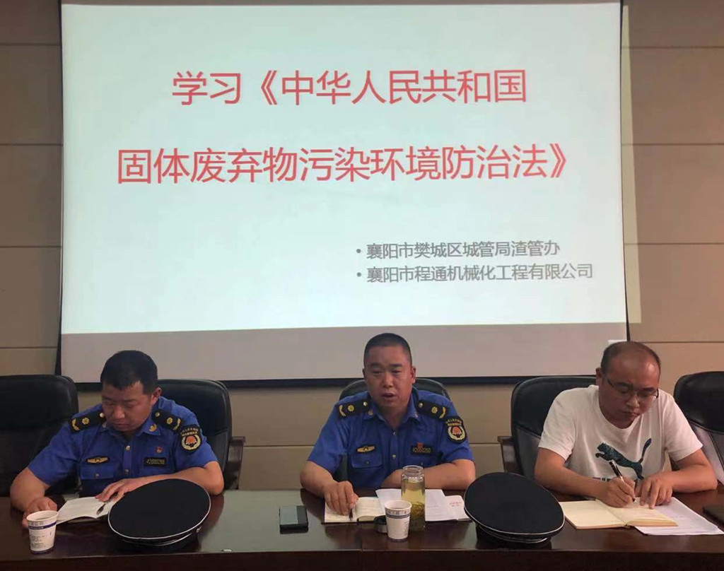 為貫徹落實(shí)習(xí)近平生態(tài)文明思想,全面深入學(xué)習(xí)領(lǐng)會(huì)新《固廢法》,增強(qiáng)公司員工法律意識(shí),5月20日下午,程通機(jī)械化公司邀請(qǐng)市城管局樊城渣管辦為程通機(jī)械化公司全體管理人員及車隊(duì)宣講《中華人民共和國(guó)固體廢物污染環(huán)境防治法》。