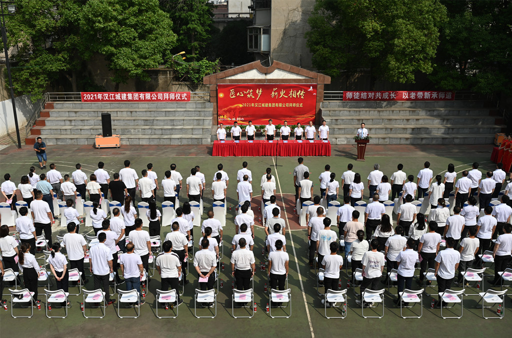 為進一步加強青年員工隊伍建設,增強新員工對企業(yè)的認同感和歸屬感,更好地延續(xù)公司導師帶徒“老帶新+傳幫帶”的傳統(tǒng)。6月11日,漢江城建舉辦2021年“導師帶徒”拜師儀式活動,公司各部室、各分(子)公司師徒代表150余人參與此次儀式。