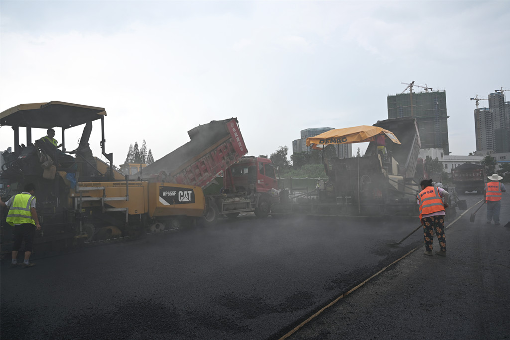 7月18日,漢江城建第三分公司對沿江大道東延伸段開始瀝青攤鋪,他們科學(xué)調(diào)配機(jī)械設(shè)備,制定詳細(xì)的工、料、機(jī)供應(yīng)計劃,合理配置人員,緊抓工期節(jié)點,分工明確。嚴(yán)格按照施工方案,對混合料拌合、運輸、攤鋪、碾壓、檢測等各項工序進(jìn)行嚴(yán)格把控。同時嚴(yán)把安全質(zhì)量關(guān),安排專人對生產(chǎn)、技術(shù)、安全進(jìn)行全程跟蹤監(jiān)督,使各項工序有條不穩(wěn)的展開。
