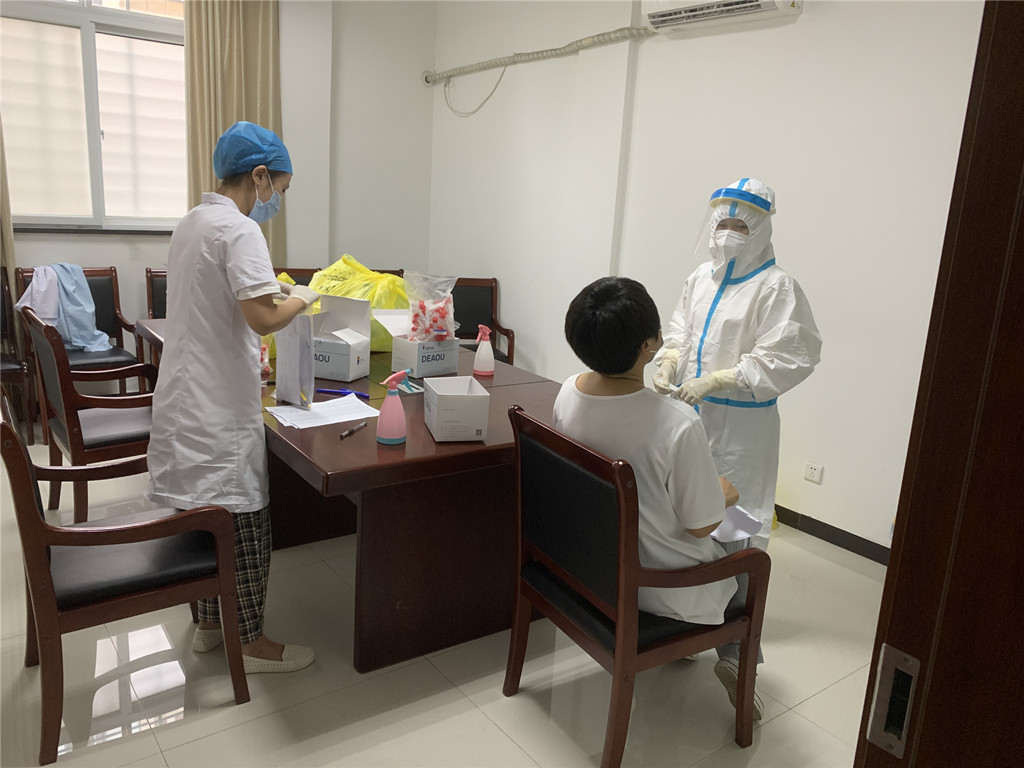 檢測(cè)采樣現(xiàn)場(chǎng),工作人員井然有序地組織分組排序、信息采集、掃碼登記及樣本采集,各個(gè)環(huán)節(jié)配合密切、銜接有序,最大限度地提高檢測(cè)工作效率。為有效緩解核酸檢測(cè)工作人員不足的壓力,各部門、各分(子)公司志愿者奔赴核酸檢測(cè)一線,在露天場(chǎng)地冒著酷暑,幫助勞務(wù)人員手動(dòng)錄入信息,以實(shí)際行動(dòng)詮釋國企員工的責(zé)任擔(dān)當(dāng)。經(jīng)過大家的共同努力,共完成約1000多名員工核酸檢測(cè)。次日,經(jīng)醫(yī)務(wù)人員檢測(cè)顯示,結(jié)果全部為陰性。