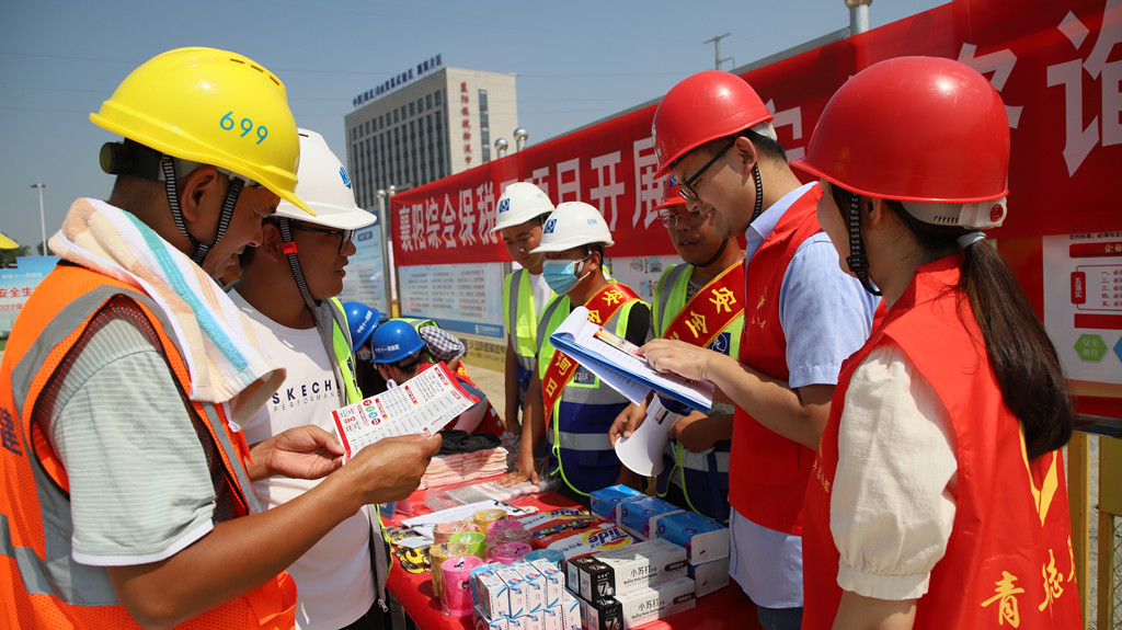每年6月16日是全國統(tǒng)一的安全生產(chǎn)宣傳咨詢?nèi),漢江城建聯(lián)合中鐵十一局、陸港公司、東風鴻遠咨詢公司圍繞全國第21個“安全生產(chǎn)月”,以“遵守安全生產(chǎn)法,當好第一責任人”為主題,深入貫徹落實《安全生產(chǎn)法》,在襄陽綜合保稅區(qū)總部經(jīng)濟區(qū)項目開展“安全生產(chǎn)宣傳咨詢?nèi)?rdquo;活動,著力宣傳安全生產(chǎn)領(lǐng)域法律法規(guī)、安全生產(chǎn)十五條硬措施等相關(guān)知識。