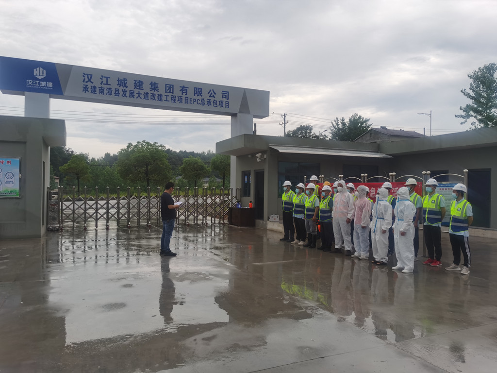 “安全第一、預(yù)防為主”,為依法、科學(xué)、規(guī)范、有效地開展新冠肺炎的預(yù)防和救治工作,強(qiáng)化全項(xiàng)目的應(yīng)急處置意識(shí),6月23日,漢江城建集團(tuán)團(tuán)委聯(lián)合第二分公司在南漳縣發(fā)展大道改建工程項(xiàng)目EPC總承包項(xiàng)目部開展“安全生產(chǎn)月”疫情防控應(yīng)急演練活動(dòng),漢江城建紀(jì)委書記曹晶晶、團(tuán)委及第二分公司各在建項(xiàng)目經(jīng)理、總工、安全員參加此次活動(dòng)。
