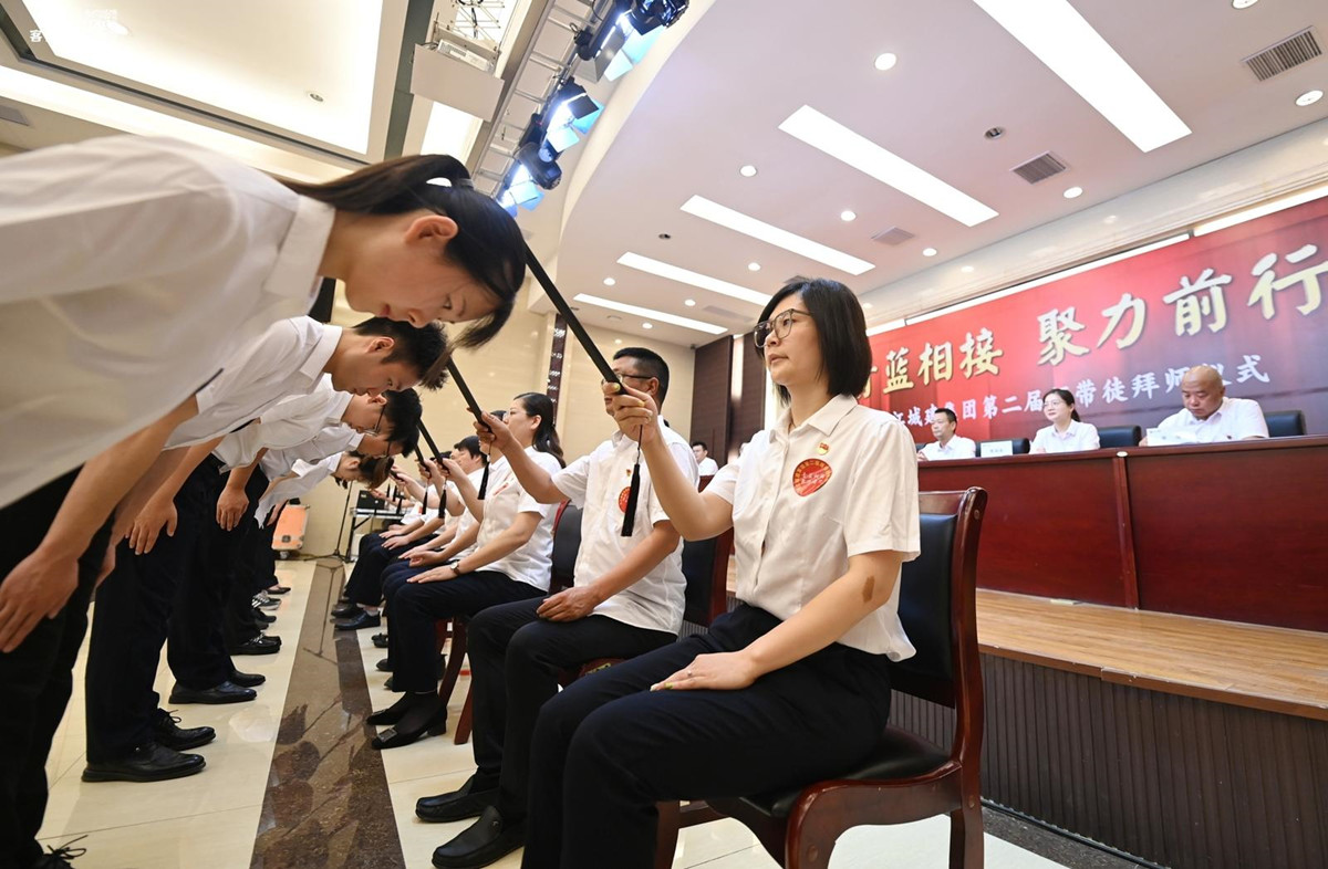 此次活動(dòng)主要是表彰第一屆9對(duì)優(yōu)秀師徒,以及開展第二屆“師帶徒”拜師儀式。拜師儀式莊嚴(yán)而肅穆,拜師改口、徒弟承諾、師傅戒尺加身、師徒互贈(zèng)禮,一共有49對(duì)新師徒共同簽訂師徒協(xié)議。