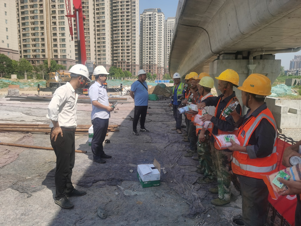 在送清涼活動中,漢江城建質安部部長吳斌對一線工人高溫下的工作和生活情況進行了細致的了解,對分公司高溫下的安全降溫措施進行了進一步的強調,分公司要根據(jù)天氣炎熱程度,適時調整中午休息時間,避開高溫時段,有效預防工人在高溫下作業(yè)可能帶來的身體不適反應,真正把關愛工人身心健康落實在具體行動中。同時要求項目部要加強作業(yè)人員安全教育培訓和封閉式管理,確保工地施工安全質量和疫情生產防控,確保生產現(xiàn)場、一線工人的生命安全和生產秩序。