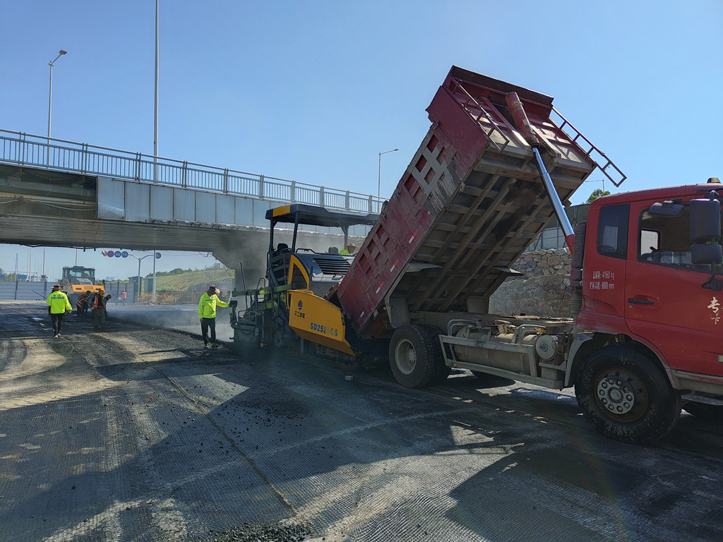 為確保本次攤鋪?zhàn)鳂I(yè)的順利進(jìn)行,第三分公司提前謀劃、統(tǒng)籌部署,組織召開攤鋪施工生產(chǎn)工作會(huì),確定最優(yōu)施工工藝、材料及配合比。攤鋪開始前,對(duì)技術(shù)管理人員、機(jī)駕人員、班組技術(shù)工人等分別進(jìn)行了安全降溫措施、安全管理及施工技術(shù)交底,此外在碾壓過程中安排專人測(cè)量檢驗(yàn),對(duì)攤鋪溫度、攤鋪速度、壓路機(jī)碾壓速度和碾壓質(zhì)量進(jìn)行全程實(shí)時(shí)的記錄,確保各項(xiàng)指標(biāo)符合規(guī)范要求。