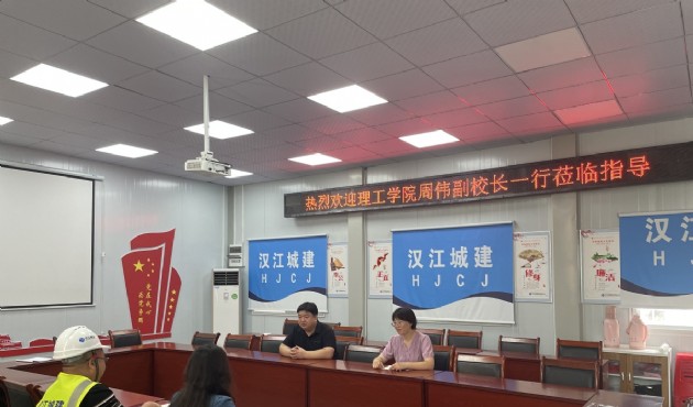 7月25日上午9點,湖北文理學院理工學院副校長周偉在學院人事處部長尹靜的陪同下,到漢江城建集團有限公司湖北省科技工程技工學校