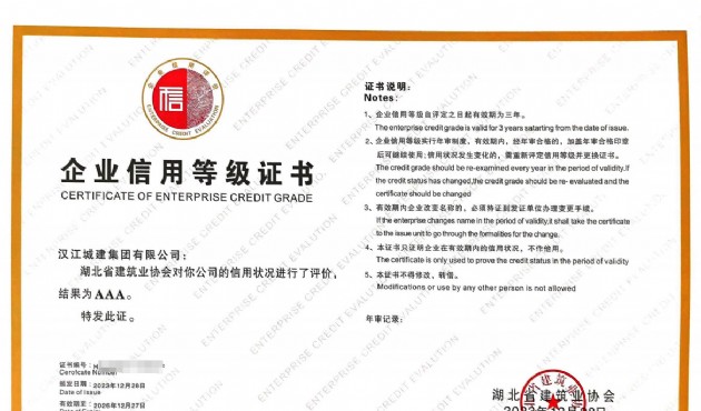 漢江城建再獲“AAA級信用企業(yè)”認(rèn)證