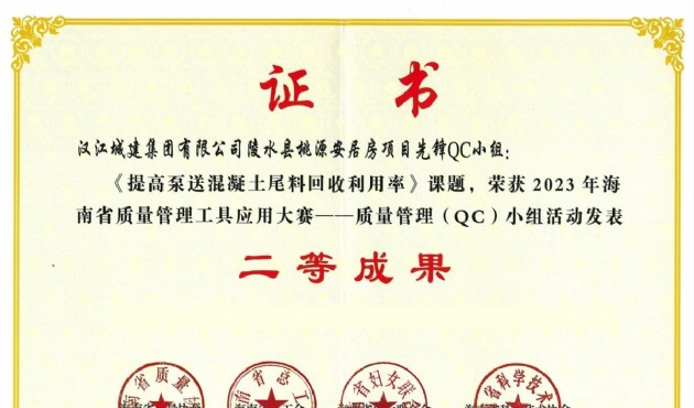漢江城建兩項課題榮獲2023年海南省質(zhì)量管理工具應(yīng)用大賽二類成果