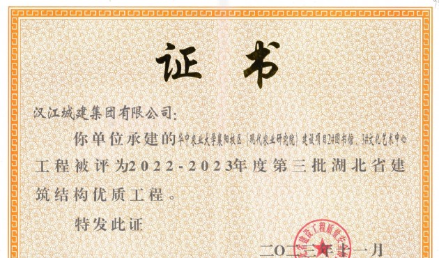 近日,湖北省建設(shè)工程質(zhì)量安全協(xié)會公布2022-2023年度第三批湖北省建筑結(jié)構(gòu)優(yōu)質(zhì)工程名單,由漢江城建集團(tuán)有限公司承建的華中農(nóng)業(yè)大