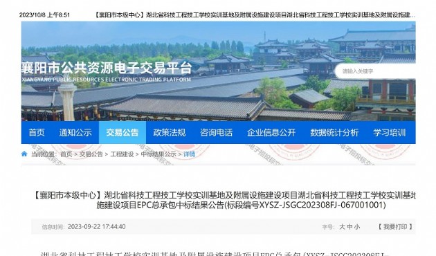 9月22日,漢江城建集團(tuán)有限公司牽頭中標(biāo)湖北省科技工程技工學(xué)校實(shí)訓(xùn)基地及附屬設(shè)施建設(shè)項(xiàng)目EPC總承包項(xiàng)目(以下稱“本項(xiàng)目&