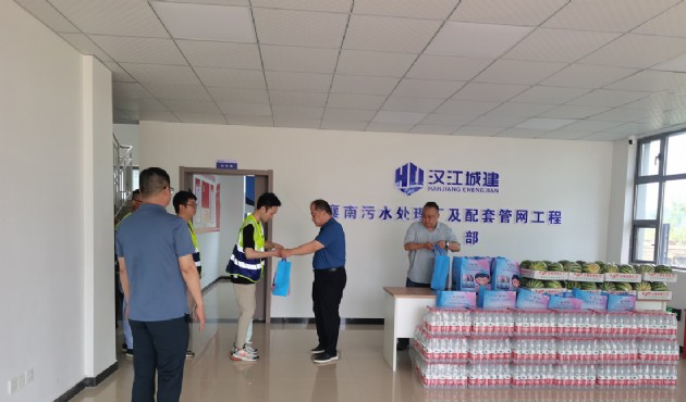 7月10日上午,集團黨委委員、董事謝鋒一行深入襄南污水處理廠及配套管網(wǎng)項目,為奮戰(zhàn)在作業(yè)一線的員工送來了礦泉水等防暑降溫物品
