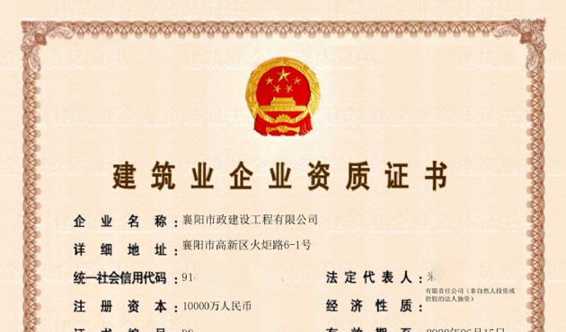 6月19日,經湖北省住房和城鄉(xiāng)建設廳核準,市政公司申報的建筑工程施工總承包貳級、市政公用工程施工總承包貳級、隧道工程專業(yè)承包