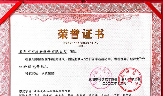 漢江城建新材料公司團隊榮獲“襄陽市工人先鋒號”、“十佳科創(chuàng)先鋒隊”榮譽