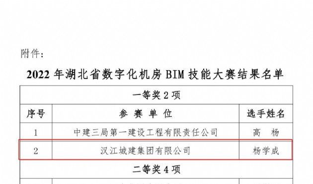 漢江城建在湖北省數字化機房BIM技能大賽中再獲多項榮譽