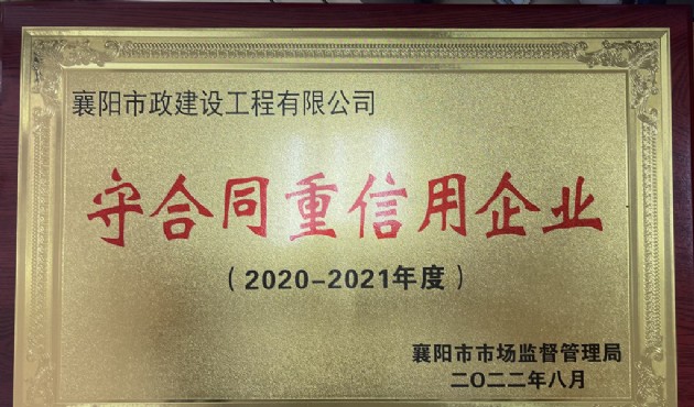 近日,襄陽市政建設(shè)工程有限公司憑借良好市場信譽與優(yōu)質(zhì)服務(wù)獲2020-2021年度襄陽市“守合同重信用”企業(yè),這是自公司改