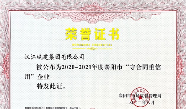 近日,襄陽市市場監(jiān)督管理局正式公布2020-2021年襄陽市“守合同重信用企業(yè)”名單,漢江城建秉承誠信經(jīng)營的企業(yè)理念,守