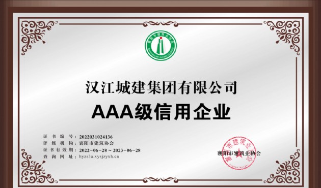 近日,襄陽市建筑業(yè)協(xié)會公布2022年度第一批襄陽市建筑業(yè)企業(yè)信用評級結(jié)果,漢江城建的信用被評定為最高等級AAA級。該信用評級是對