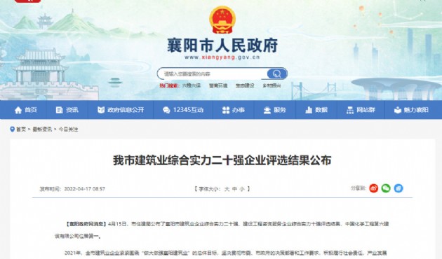 喜訊!漢江城建榮獲襄陽(yáng)市建筑業(yè)企業(yè)綜合實(shí)力二十強(qiáng)