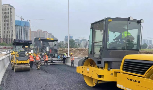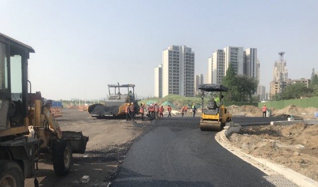 向五一通車(chē)目標(biāo)邁進(jìn)關(guān)鍵一步 清河北路完成瀝青下面層攤鋪