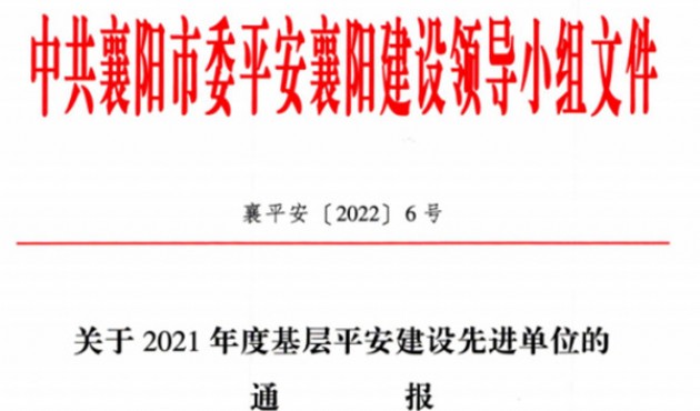 近日,中共襄陽市委平安襄陽建設(shè)領(lǐng)導(dǎo)小組發(fā)布文件《關(guān)于2021年度基層平安建設(shè)先進單位的通報》,漢江城建獲“基層平安建設(shè)先