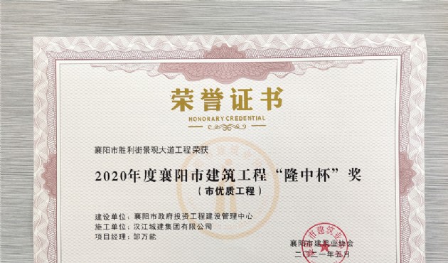 漢江城建承建的兩項工程獲2020年度市優(yōu)質(zhì)工程獎