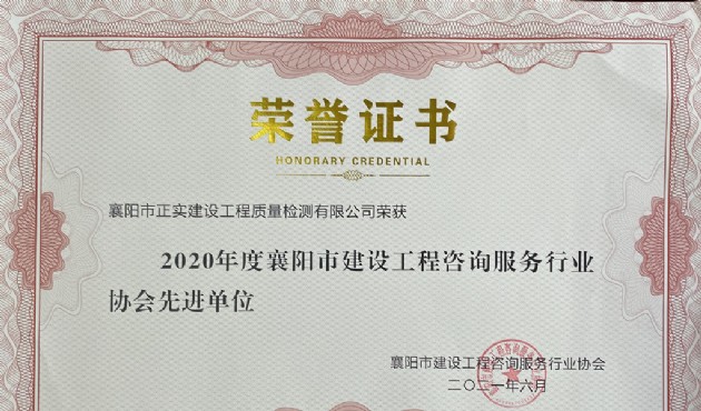 正實檢測公司榮獲“2020年度襄陽市建設(shè)工程咨詢服務(wù)行業(yè)協(xié)會先進(jìn)單位”