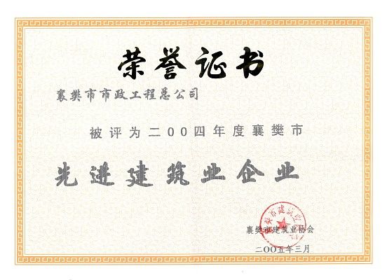 2004年襄樊市先進建筑業(yè)企業(yè)