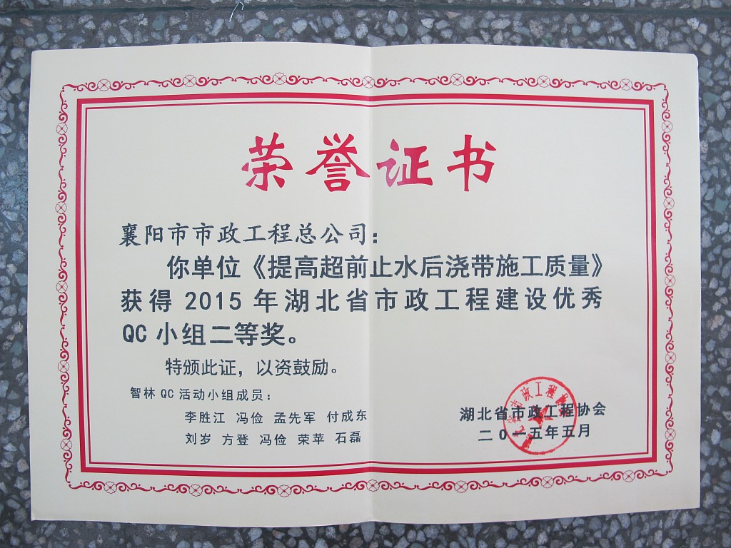 2015超前止水后澆帶施工質(zhì)量湖北省優(yōu)秀QC二等獎(jiǎng)