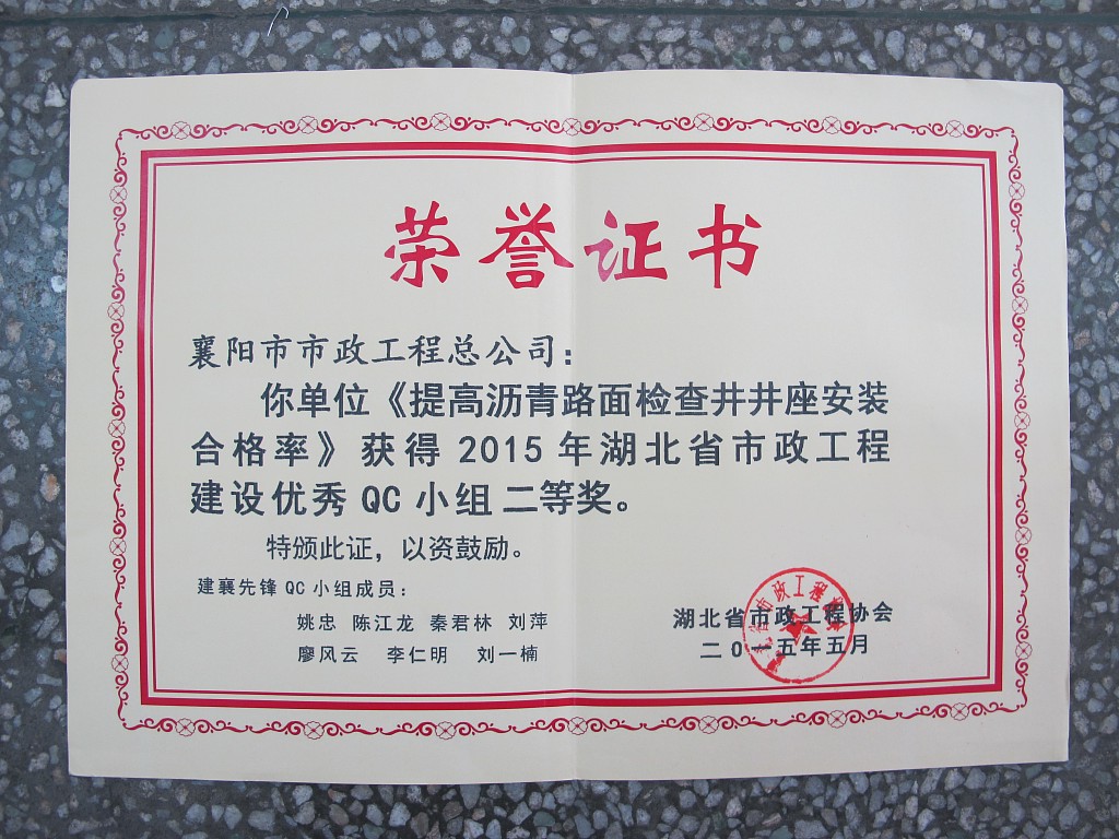 2015瀝青路面井座安裝合格率湖北省優(yōu)秀QC二等獎