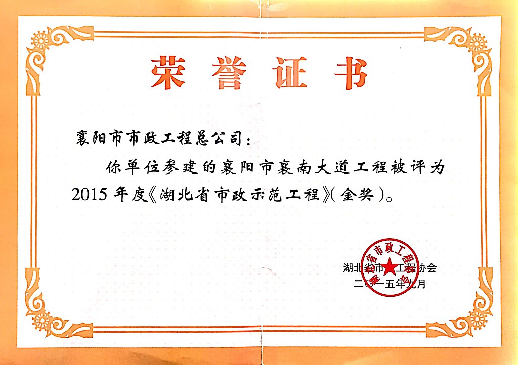 2015襄南大道湖北省市政示范工程金獎(jiǎng)