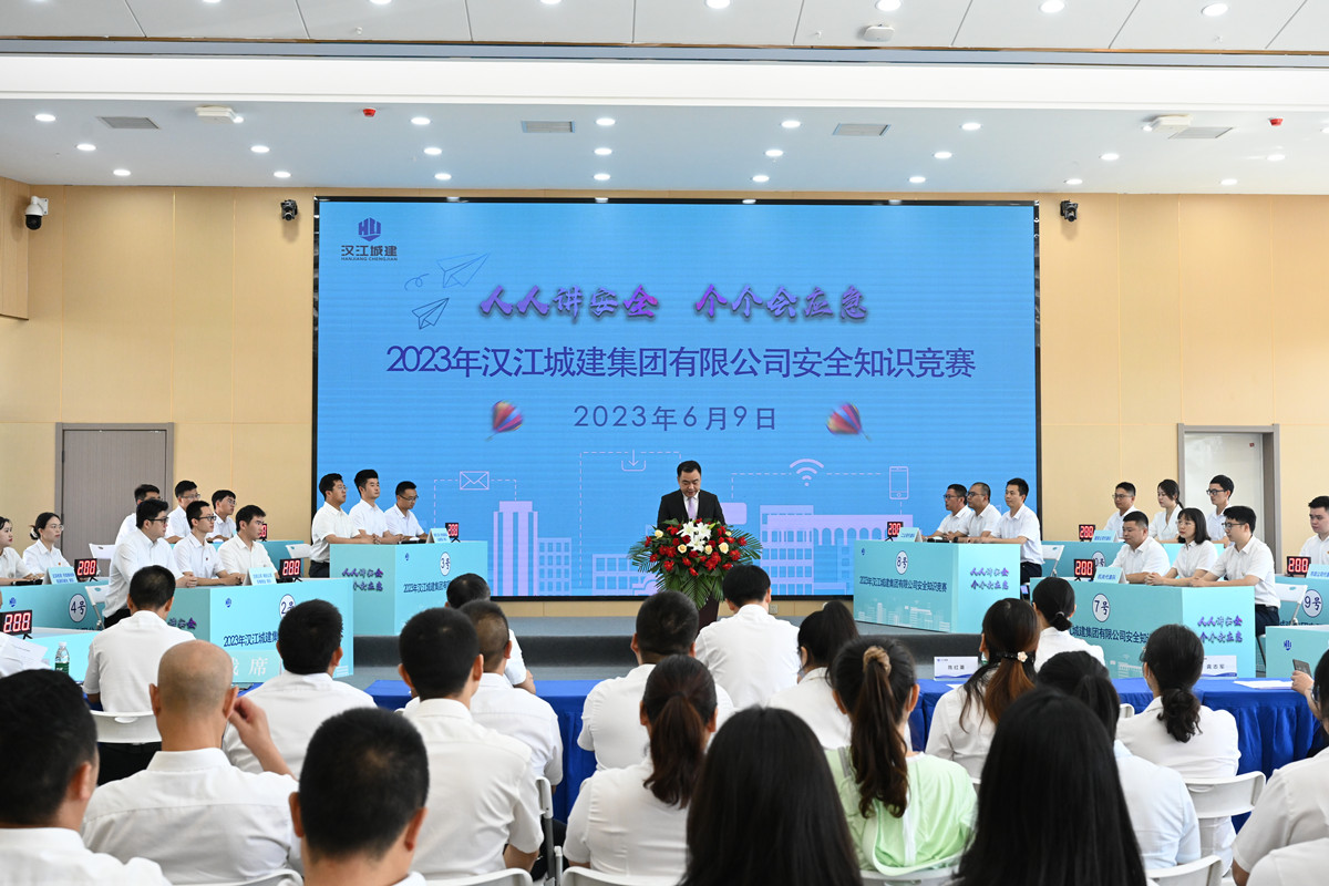 為進(jìn)一步營(yíng)造“全國(guó)安全生產(chǎn)月”活動(dòng)氛圍,培養(yǎng)干部職工安全生產(chǎn)知識(shí)學(xué)習(xí)意識(shí),掀起學(xué)習(xí)安全生產(chǎn)知識(shí)熱潮。6月9日上午,漢江城建組織開(kāi)展“人人講安全,個(gè)個(gè)會(huì)應(yīng)急”主題知識(shí)競(jìng)賽活動(dòng),漢江城建黨委書記、董事長(zhǎng)盧國(guó)宏,出席活動(dòng)并發(fā)表講話。漢江城建黨委班子成員,機(jī)關(guān)部室、分(子)公司負(fù)責(zé)人,在建項(xiàng)目項(xiàng)目經(jīng)理及員工代表等100余人參加本次活動(dòng)。