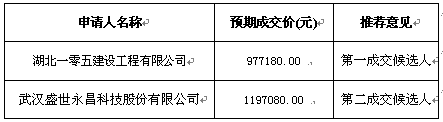 申請(qǐng)人名稱 預(yù)期成交價(jià)(元) 推薦意見