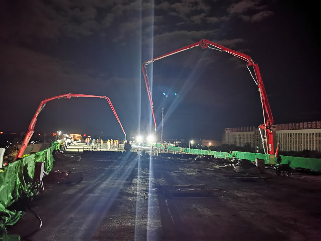 10月12日上午7時(shí),隨著混凝土輸送泵把最后一方混凝土澆筑到梁中,漢江城建商品混凝土公司結(jié)束了3天的晝夜鏖戰(zhàn),順利完成了2400多方C50型號(hào)的商品混凝土的連續(xù)生產(chǎn)供應(yīng)任務(wù),此次生產(chǎn)的混凝土用于內(nèi)環(huán)提速改造二期工程鹿鳴路右幅第一聯(lián)、楚城路右幅第六聯(lián)現(xiàn)澆梁澆筑,獲得中鐵上海工程局集團(tuán)有限公司的好評。