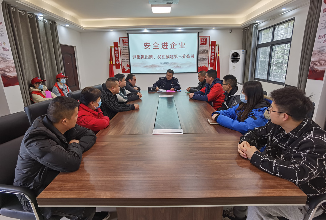 為深入學習宣傳貫徹落實黨的二十大精神,持續(xù)優(yōu)化法治化營商環(huán)境,助力企業(yè)發(fā)展,2月23日,尹集鄉(xiāng)派出所教導員、民警走進轄區(qū)企業(yè)漢江城建第三分公司,了解企業(yè)生產(chǎn)經(jīng)營狀況、企業(yè)文化,開展了一系列警企聯(lián)建活動。
