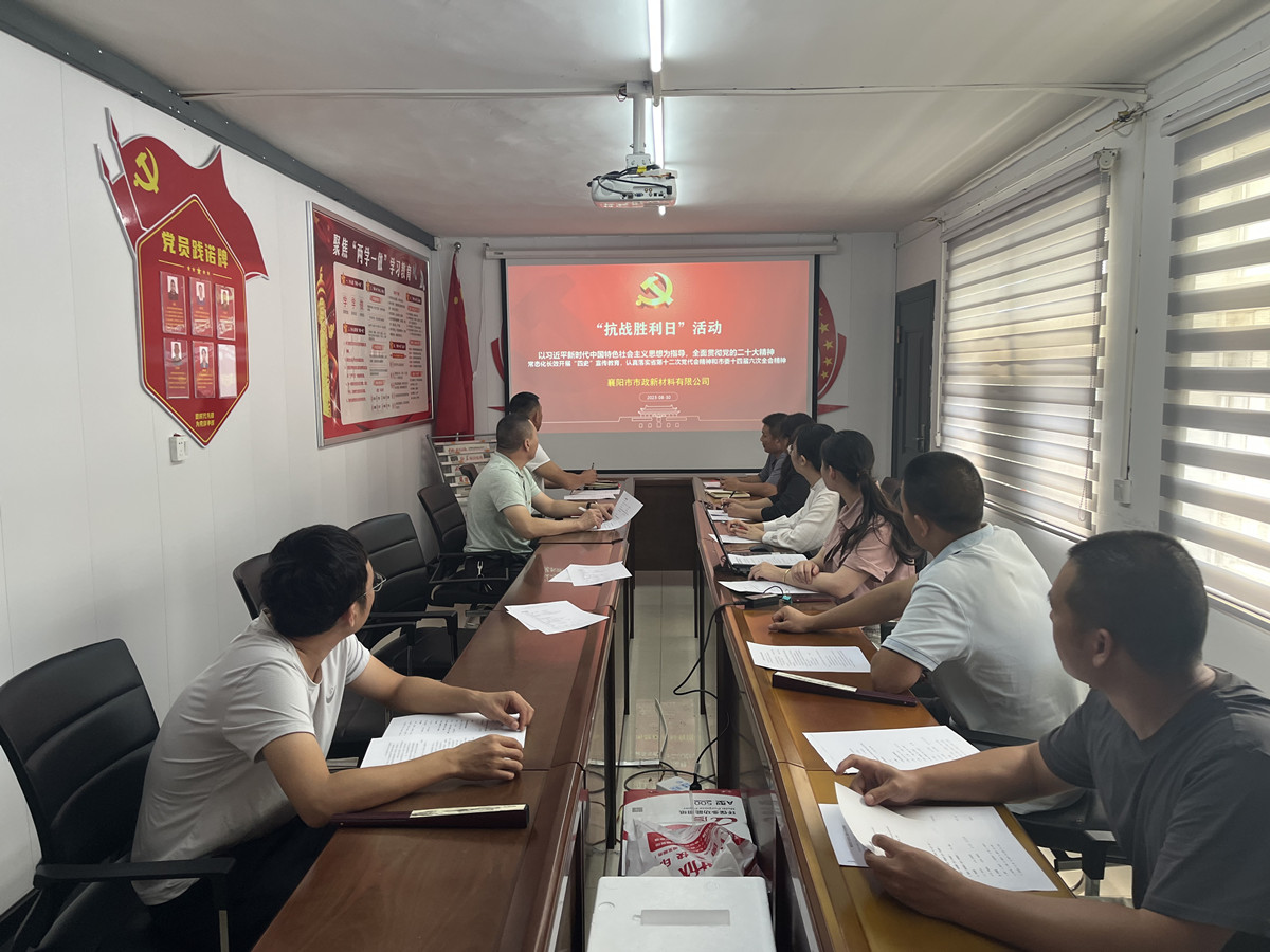 為了全面貫徹黨的二十大精神,常態(tài)化長效化開展“四史”宣傳教育,認(rèn)真落實(shí)市委宣傳部印發(fā)的《關(guān)于在抗戰(zhàn)勝利日等重要節(jié)點(diǎn)開展群眾性主題宣傳教育活動(dòng)的通知》,近日,新材料公司組織全體黨員及所有崗位職工,圍繞抗戰(zhàn)勝利日節(jié)點(diǎn)開展宣傳教育活動(dòng),激勵(lì)廣大群眾銘記歷史、勿忘國恥。