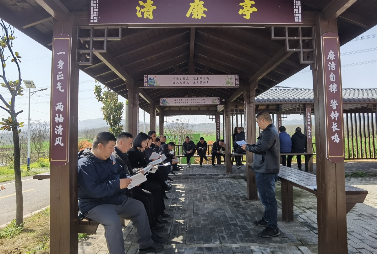 圖為漢江城建第三分公司、新材料公司、交安公司黨支部走訪襄東革命紀(jì)念館清廉亭開展集中學(xué)習(xí)活動(dòng)現(xiàn)場(chǎng)